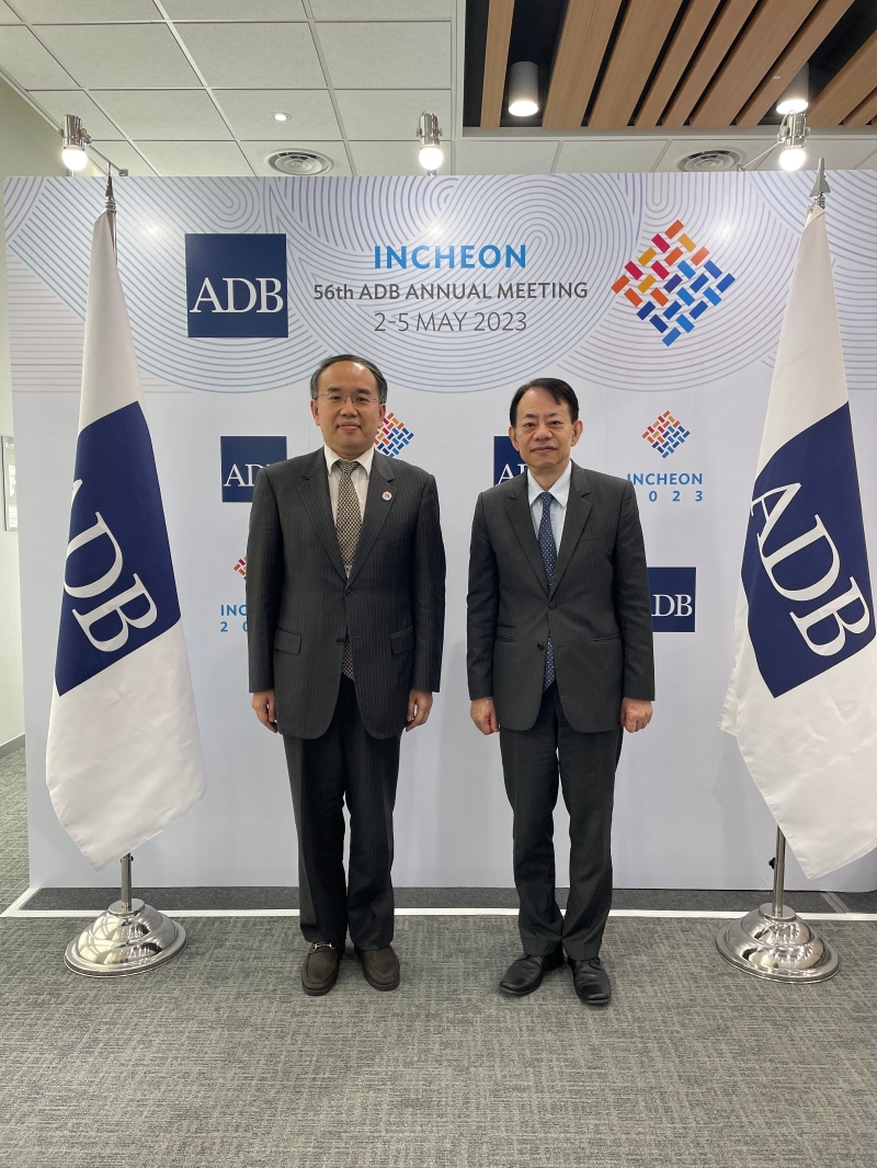 圖片來源:政府新聞網。圖示許正宇(左)與亞洲開發銀行行長淺川雅嗣(右)會面。 此外,許正宇亦與亞行副行長Roberta Casali和司庫Pierre Van Peteghem會面,並與在亞行董事會中代表香港所屬組別的執行董事Rachel Thompson會晤。 在與Rachel Thompson的會議上,許正宇表示,欣悉亞行在2022年透過在香港發行債券籌集了超過7.28億美元,香港金融市場規模既深且廣,便利亞行從私營界別籌集資金。他希望亞行繼續充分利用香港眾多的投資者進行集資。