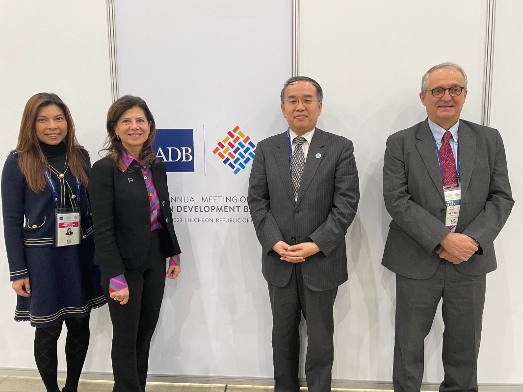 圖片來源:政府新聞網。圖示許正宇(右二)與亞洲開發銀行副行長Roberta Casali(左二)和司庫Pierre Van Peteghem(右一)會面。旁為香港駐東京經濟貿易首席代表歐慧心(左一)。