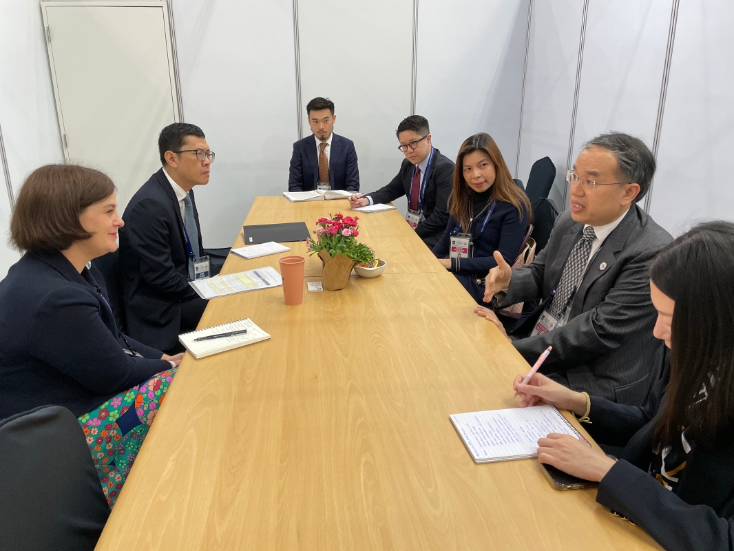 圖片來源:政府新聞網。圖示許正宇(右二)與在亞洲開發銀行董事會中代表香港所屬組別的執行董事Rachel Thompson(左一)會面。香港駐東京經濟貿易首席代表歐慧心(右三)亦有出席。 許正宇在與韓國銀行總裁李昌鏞的會議上表示,儘管2022年環球金融市場因通貨膨脹和利率上升面對艱難的境況,香港金融市場仍有強韌穩健的金融體系支撐;近期國際銀行業的動盪對香港銀行體系和貨幣穩定的影響微乎其微。 許正宇亦與李昌鏞分享去年十月發表有關虛擬資產在港發展的政策宣言。該政策宣言闡明政府的願景和政策方針,以建立一個便利的環境,並訂出所需規限,按照國際標準緩減實際和潛在風險,促進香港虛擬資產行業得以可持續和負責任地發展。