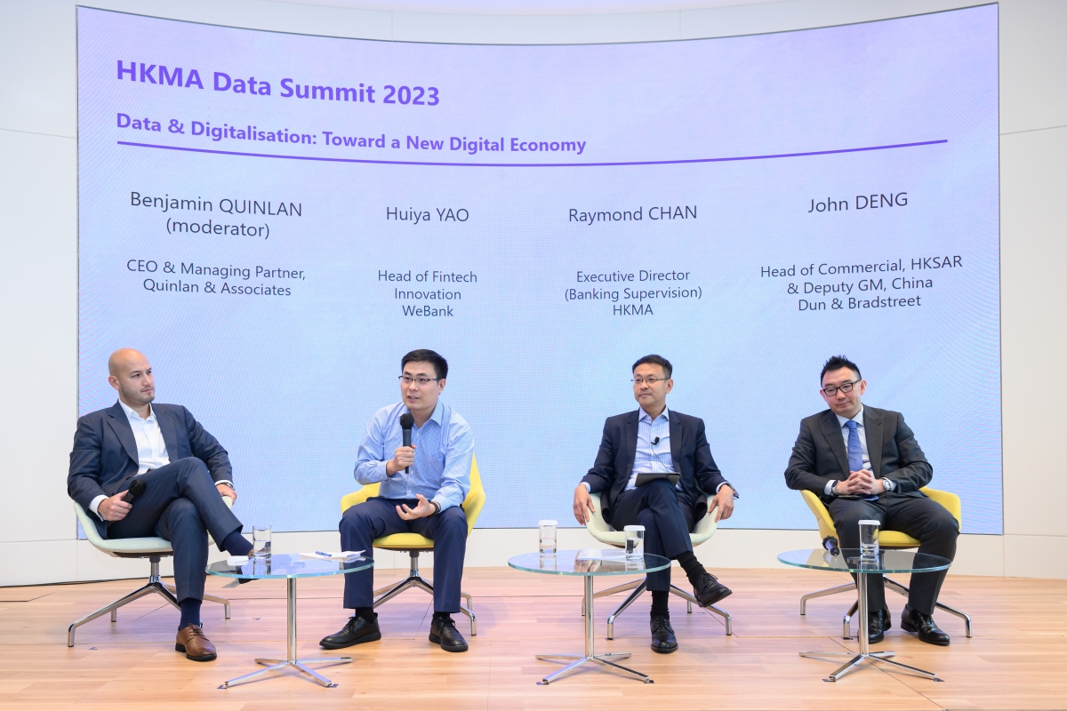 圖片來源:政府新聞網。圖示:香港金融管理局助理總裁(銀行監理)陳景宏(右二)、鄧白氏中國區業務副總裁兼香港地區銷售負責人鄧聰(右一)和微眾銀行科技創新產品部負責人姚輝亞(左二) 峰會主要探討三大主題:通過數碼化以簡化銀行業務流程;利用替代數據提升數據分析能力;開發創新產品和服務。 業界希望三管齊下,可為中小型企業提供更好的金融服務,並促進香港的普及金融發展。 這次峰會的專題討論環節探討了金融服務業如何把握機遇、加強自身的數碼和創新能力,以應對日漸增長的客戶需求。此外,峰會亦強調善用數據和數碼化所帶來的潛在效益,並匯聚了十多家數據提供方和數據分析服務供應商於峰會現場分享經驗。 金管局亦在峰會分享了“商業數據通”的最新發展。項目估計自2022年10月“商業數據通”正式推出以來,促成了超過3100宗貸款申請,總額逾28億港元。此外,金管局亦計劃引入更多數據提供方,令“商業數據通”的數據源更多元化,涵蓋政府、物流和餐飲服務數據。