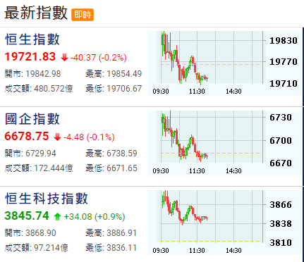 【港股半日速報】港股跌40點