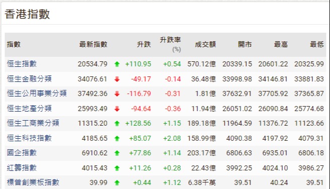 香港新聞網5月15日電 香港恆生指數中午收市報19654點,升27點或0.14%,半天成交額為461.99億港元。