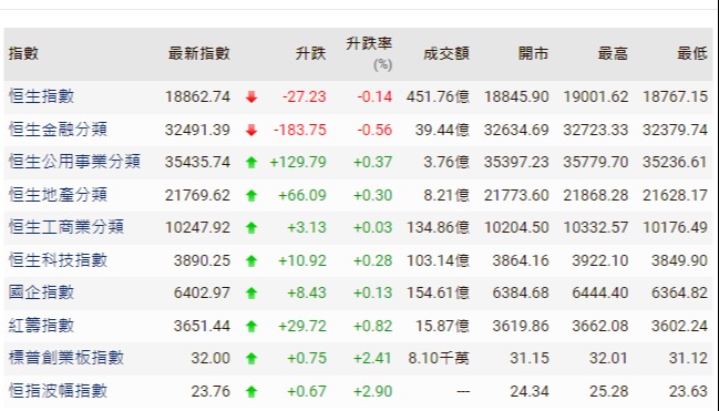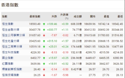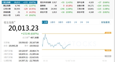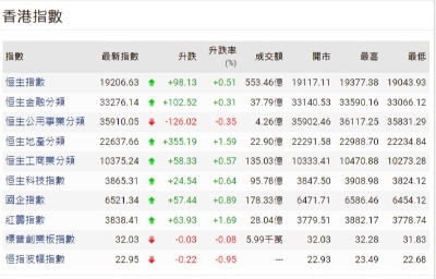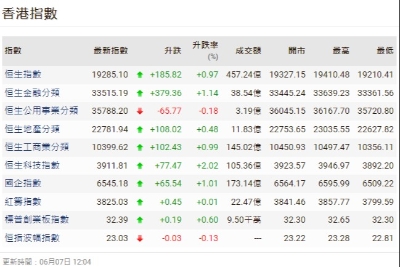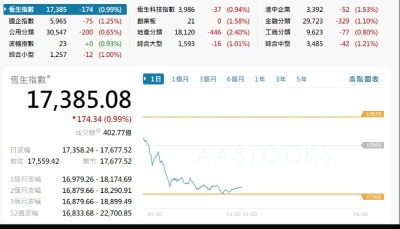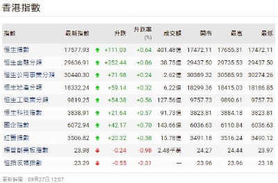 【港股半日速報】港股升27點