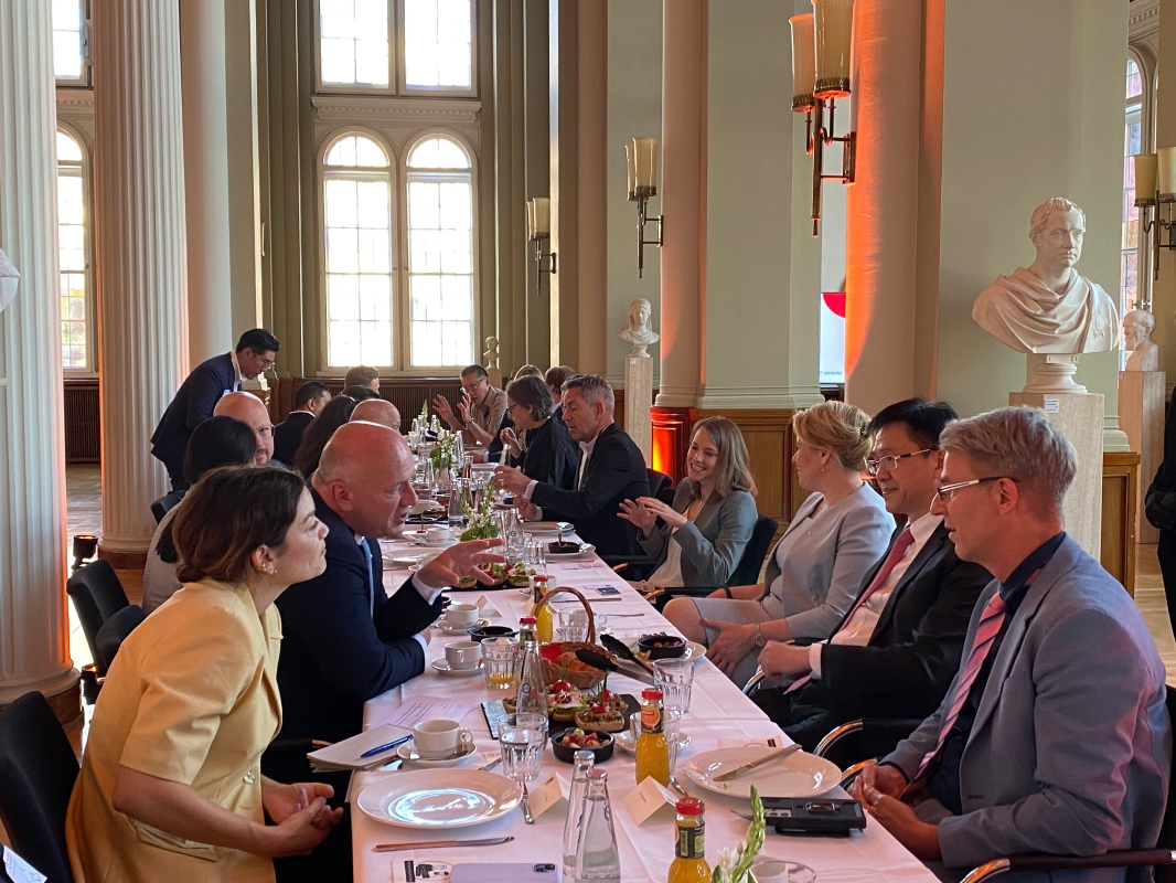 孫東(右二)出席由亞洲柏林峰會主辦的早餐會。 孫東在峰會開幕禮上發表題為“香港:亞洲創新動力——開拓中國內地市場的理想門戶”的主題演講,向與會者闡述特區政府對完善創科生態系統和促進產業發展的努力,特別是對初創企業的各種支援,令香港成為設立和培育初創企業的最佳目的地之一。 孫東說:“我們歡迎世界各地的創科公司,除了初創,亦包括具潛力和龍頭創科企業等在香港開拓或擴展業務。他們可透過香港打入大灣區和中國內地的龐大市場,抓緊無限商機。”他續指,只有透過東西方之間緊密的跨區域合作和務實的的交流,將為全球科技發展帶來強大協同效應,為人類社會帶來繁榮和禆益。
