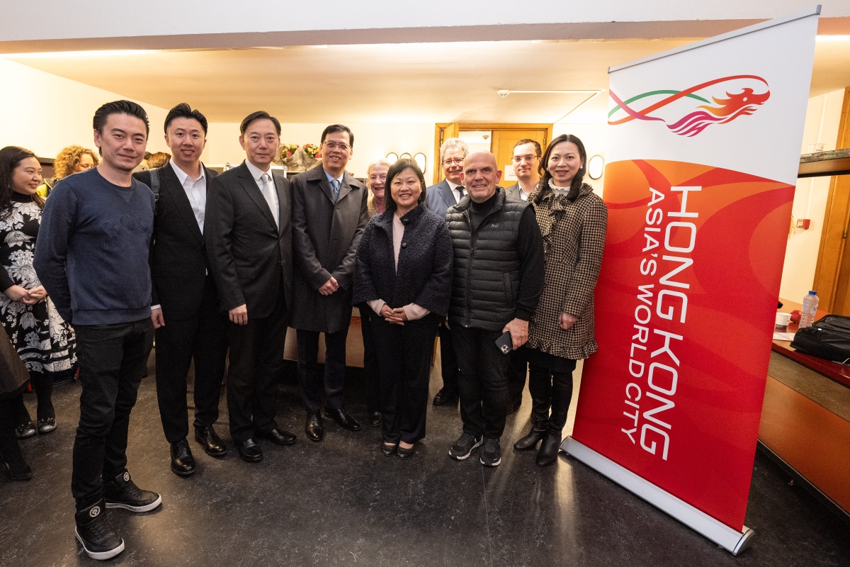 香港駐歐洲聯盟特派代表翁佩雯(前排右三)與港樂成員及嘉賓會面,包括港樂音樂總監梵志登(前排右二)、行政總裁霍品達(後排右二),以及中國駐歐盟使團朱京公使(前排左四)和中國駐比利時大使館代辦吳剛公參(前排左三)。 在布魯塞爾音樂會前,駐布魯塞爾經貿辦舉辦聯絡活動,香港駐歐洲聯盟特派代表翁佩雯與出席活動的嘉賓及港樂成員交流,指出共享音樂是匯聚世界各地的觀眾及促進跨文化民心相通的不二途徑。她表示:“港樂國際巡演標誌着香港對來自不同文化和不同背景的人才竭誠開放。香港不單培育本地藝術家,也是吸引國際人才追尋夢想的城市。” 港樂在布魯塞爾的音樂會亦是比利時最大規模的古典音樂節——克拉拉音樂節的開幕音樂會。 【編輯:黃璇】