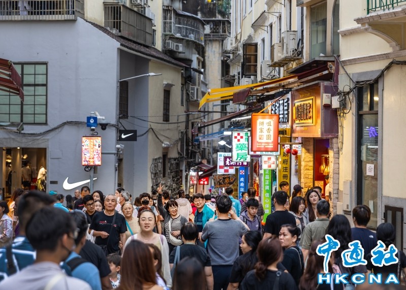 資料圖為大三巴附近手信街的遊客人潮如織。香港中通社圖片 澳門首季入境旅客按年增長79.4%至887.6萬人次,恢復至2019年同期的85.7%,帶動博彩服務出口及其他旅遊服務出口按年分別上升62.7%及14.8%。 內部需求方面,包括私人消費支出、政府最終消費支出及投資,亦錄得3.4%的增幅,當中私人消費支出按年上升 10.9%。至於服務進口則下跌3.5%。貨物貿易方面,貨物出口及進口按年分別下跌13.6%及1.4%。(完) 【編輯:胡雪石】
