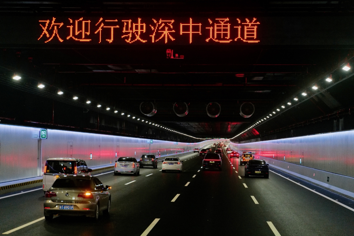 香港新聞網6月30日深圳電 6月30日上午,中國深中通道(深圳至中山)通車儀式在西人工島舉行。這條歷盡7年艱辛建設的超級工程正式宣布通車,是全球首個集“橋、島、隧、水下互通”為一體的跨海集群工程。當日下午,深圳機場中山航空港以及深中機場專線正式投入運營,深中航空港往返深圳機場的巴士每天往返共72班次。深中通道位於粵港澳大灣區核心區域,項目全長約24公里,採用設計速度100公里/小時的雙向八車道高速公路技術標準,是世界首例集“橋—島—隧—水下互通”四位一體跨海集群工程,獨創了多個世界領先技術。深中通道的建成,以24公里的里程和30分鐘以內的車程打通珠江口東西兩岸的經濟動脈。深中通道開通後,深圳至中山之間車程從兩小時縮短至半小時內,未來廣州南沙至中山僅需15分鐘,珠海和江門至深圳從2小時以上縮短至1小時內,開創粵港澳大灣區交通發展新格局。(聞子 攝)
