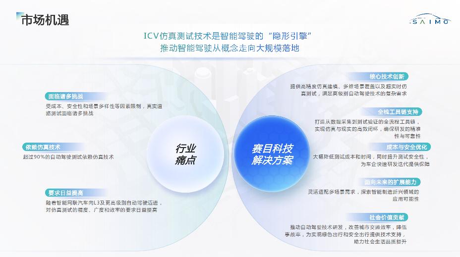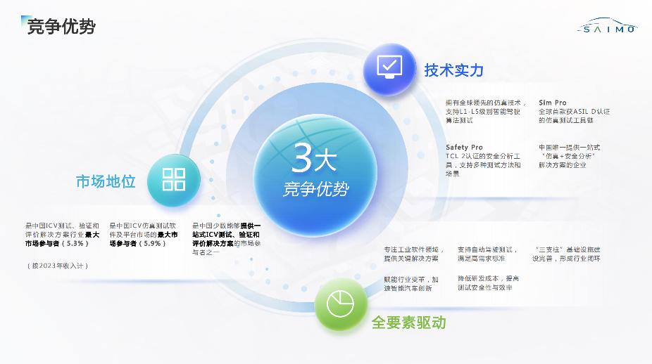 據介紹,智能網聯汽車(ICV)仿真測試領域具有廣闊的市場前景。根據弗若斯特沙利文數據,中國ICV行業市場規模預計從2023年的1653億元增長至2030年的6596 億元,年均複合增長率約20.1%;其中ICV 測試、驗證和評價解決方案行業市場規模將以 33.6%的年均複合增長率增長至279億元。賽目科技致力於解決行業關鍵痛點,並持續創新,為行業提供全面的工具鏈解決方案。工具鏈以Sim Pro(仿真平台)和Safety Pro(綜合安全分析工具)為核心,兩款產品已通過ISO 26262標準的功能安全認證,成為賽目科技技術壁壘和利潤增長點的重要組成部分。憑藉技術優勢和市場前瞻性,賽目科技正成為智能駕駛從概念邁向規模化落地的“隱形引擎”,也是這一高速增長中的最大受益者。 賽目科技此次全球發售3333.34萬股,獨家保薦人為光銀國際,中移國際為基石投資者,認購1.485億港元公司股份。上市後,賽目科技將充分藉助資本力量,開啟新的發展篇章。募集資金62.2%將用於未來三年的研發投入,升級現有解決方案,拓展無人機、數字孿生城市及智慧農業等新興應用領域;27.8%將用於市場擴張及品牌建設,助力國際化發展;剩餘10%用於補充運營資金。 有投資者表示,香港依託大灣區,擁有完善的科技創新政策支持,賽目科技的上市將進一步推動本地高科技企業的發展。期待賽目科技以上市為契機,對新興科技行業的國際化進程發揮積極作用。 與會專家表示,賽目科技將以港股上市為契機,將匯聚資本與資源優勢,持續引領智能網聯汽車產業變革,助力中國從汽車大國邁向汽車強國,為全球智能交通發展貢獻“中國智慧”。(完) 【編輯:黎金良】