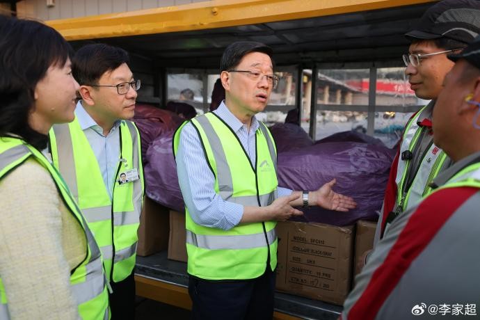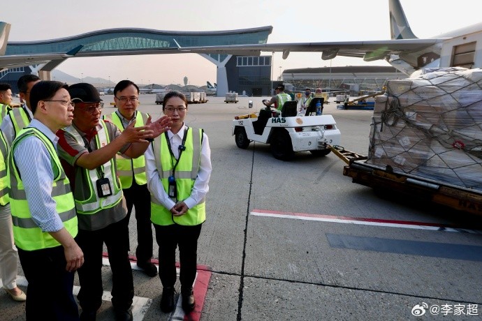 李家超到訪停機坪向多位地勤人員了解貨運流程和忙碌的日常工作,美國濫施關稅擾亂全球供應鏈,但關稅戰有危也有機, 強調香港強化七項策略應對,包括全面把握國家發展機遇;加強國際交往合作、積極深化區域合作;加快產業升級轉型;加大發展科技創新、吸引高端人才;大力推動國際金融合作等。香港將充分發揮國際聯繫優勢,積極開拓中東和東盟等新興市場,支持區域合作,為經濟發展開闢新藍海。
