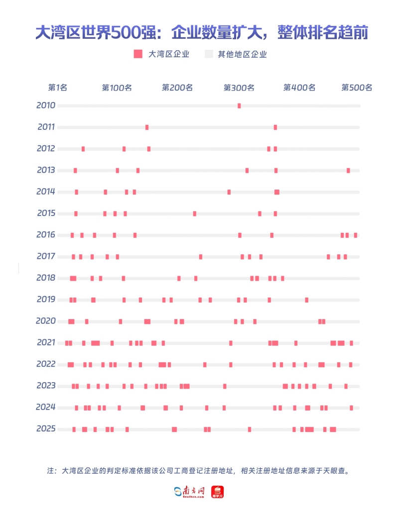 2010年,世界500強企業大灣區僅有一家,經過15年的發展,至2025年,大灣區企業在世界500強中已集體崛起。灣區企業已從早期的“零星點綴”,成長爲全球舞台上不可忽視的穩定力量。 在金融領域,中國平安、招商銀行、廣州工控等龍頭合計營收約3500億美元,展現出綜合金融集團的雄厚實力。2025年,國際資本市場依舊處於高波動階段,美聯儲多次調整利率,全球資金流動趨緊。在這一背景下,灣區金融企業取得成績實屬不易。近年來,粵港澳大灣區資本市場重大平台及創新試點不斷落地,已建成較發達的多層次資本市場體系,在全球資本市場占據著重要地位。 能源和基建方面,南方電網長期守護區域電力安全,廣州建築集團則在城市更新與基礎設施建設中扮演重要角色。這一趨勢與“雙碳”目標和“新基建”政策密切相關。憑借龐大的産業集群與人口規模,灣區不僅是政策落地的重點區域,更是綠色轉型與數字化建設的先行示範區。 創新科技企業正在塑造新優勢 大灣區企業中,和去年相比排名提升最多的是東莞的立訊精密,比去年提升65名,標誌著大灣區電子製造業正在邁向高附加值與精密化的新時代。