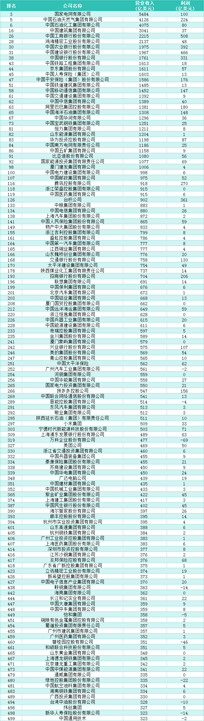 世界500強:大灣區23家企業上榜占全國五分之一香港新聞網7月31日電 《財富》世界500強排行榜揭曉。沃爾瑪連續第十二年蟬聯榜首,亞馬遜保持第二,中國國家電網公司位居第三,沙特阿美與中國石油分列第四、五位。今年,中國共130家企業上榜,大灣區有23家企業入圍。上榜的中國內地及中國香港企業平均利潤達42億美元。 世界500強企業貢獻全球三成GDP 本屆上榜企業總營收達41.7萬億美元,超全球GDP三分之一,同比增長1.8%;上榜門檻提升至322億美元。總淨利潤約2.98萬億美元,同比增長0.4%,資產與淨資產規模均創世界500強排行榜創立以來的最高峰,但員工總數有所減少。 中國有30家企業進入前100強。其中,京東排名44,華為排名83,比亞迪排名91,而騰訊今年跌出100,排名116。2024年中國上榜的130家企業營收總額約10.7萬億美元,平均銷售收入820億美元。上榜的中國內地及中國香港企業平均利潤達42億美元。