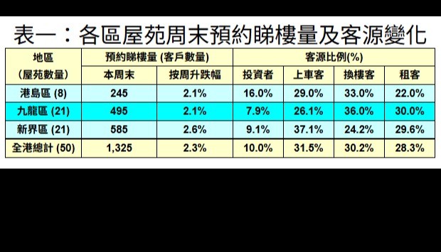 香港新聞網10月10日電 利嘉閣地產研究部主管陳海潮表示,樓價指數創約15個月高位,推動業主放盤套現,加上重啟減息刺激樓盤成交,周末預約看房量持續向好。根據利嘉閣地產研究部數據估算,全港50個指標屋苑共錄1305組客戶於周末預約看房,較上周末的1285組增加1.6%。
