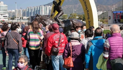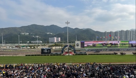 【字幕】甲辰龍年伊始,香港賽馬會於2月12日大年初三在沙田馬場舉行《農曆新年賽馬日》。馬場當天安排了不同的喜慶活動吸引不少馬迷入場,入馬場人士均可獲贈“招財筆”一支,感受熱鬧喜氣的新春氣氛。