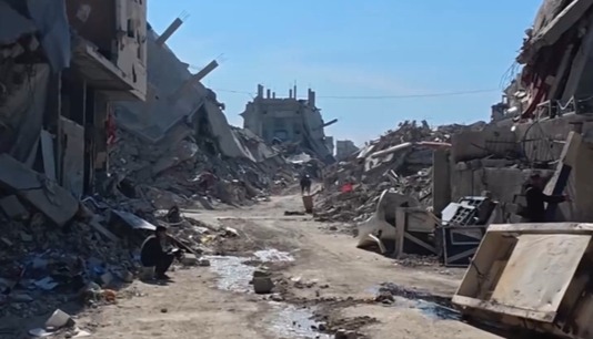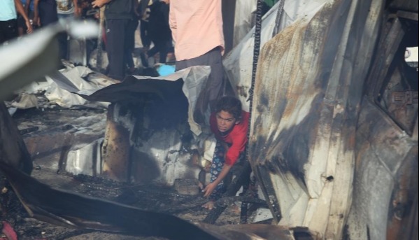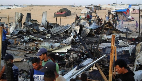 【字幕】5月26日,以色列軍隊在加沙南部拉法難民營發動空襲,造成至少45人死亡。其中包括23名婦女兒童及長者,另有約200人受傷。以軍使用了2000磅重的美制炸彈對難民營進行轟炸,現場到處都是"焦黑的屍體和斷肢"。