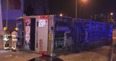 【字幕】11月18日晚上11時左右,香港大圍成運路一巴士發生翻側意外, 多人被困,一男子當場證實死亡。