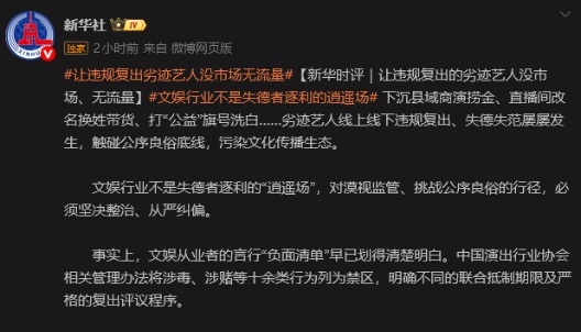 【同期】國務院台灣事務辦公室發言人 馬曉光 我們支持兩岸文化交流的政策沒有改變。對於在大陸進行的營業性演出活動,有關部門一貫依法依規管理,為的是引導更多內容健康、積極向上的文化產品進入市場。同時,我們鼓勵支持演藝人員自覺弘揚行風藝德,不斷提高思想品德修養、職業道德素養和人文藝術涵養,樹立良好社會形象。對於一些涉及個別人的個別事件、個別情況,我們希望來大陸發展的演藝人員都能做到德藝雙馨。 記者 張宏斌 香港報道 |