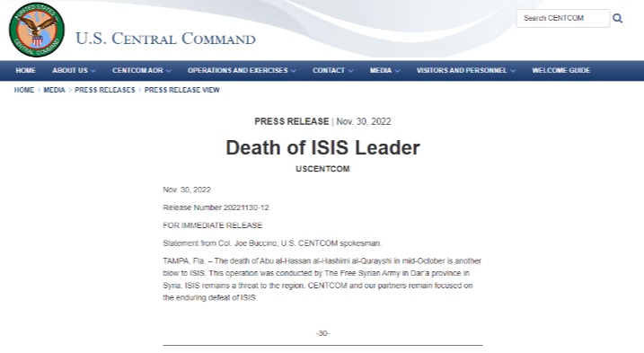 【字幕】2月3日,美國總統拜登稱美軍在敘利亞行動中擊斃“伊斯蘭國”領袖哈希米(Abu Ibrahimi al-Qurayshi)。