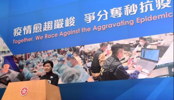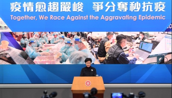 【字幕】由於第五波疫情急劇惡化,香港特區行政長官林鄭月娥2月8日召開記者會公佈最新防疫措施。