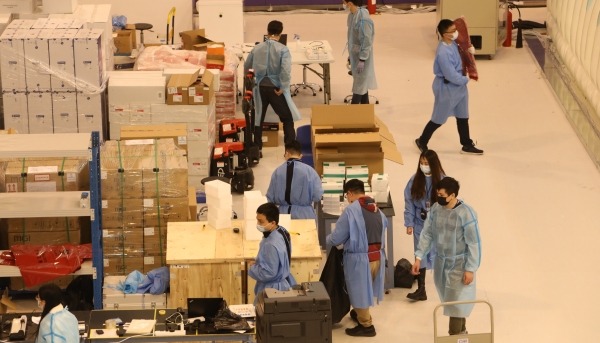 【字幕】第五波疫情繼續在港蔓延,2月15日,香港單日新增1619宗本地確診個案,初步陽性個案高達5400宗。為解決香港新冠病毒檢測能力不足這個問題,2月15日零時,位於香港馬鞍山體育館的火眼實驗室重新投入使用。
