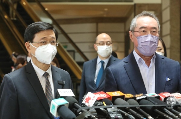 【字幕】在宣布參選後,4月12日,香港特區政府前政務司司長李家超繼續展開拜訪活動,拜訪中企協會選委,解釋自身施政理念並聽取多方意見,以完善政綱。