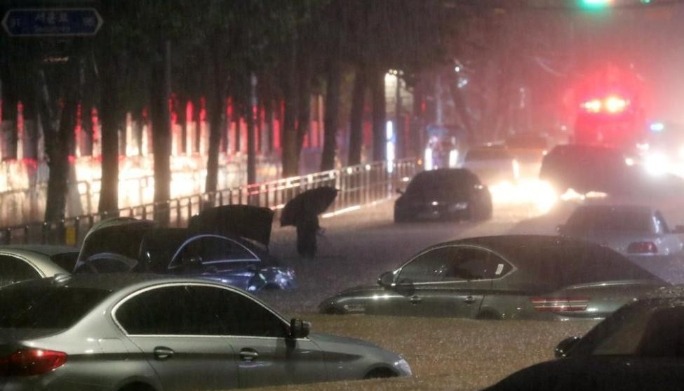 韓國暴雨洪災 中國小夥勇救圍困老夫婦被稱“市民英雄”