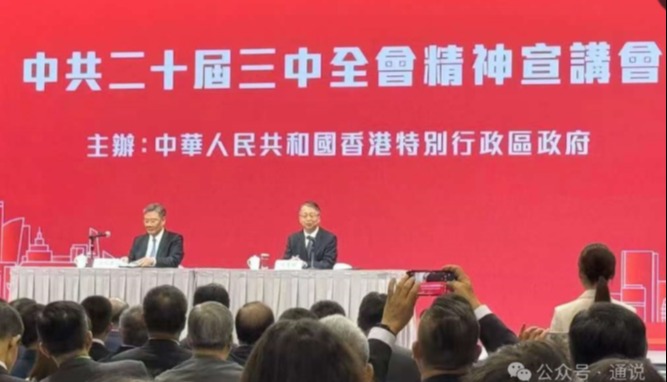【解說】 3月23日,香港金融界、創科界分別舉行“學習貫徹全國兩會精神宣講會”。中央政府駐港聯絡辦主任鄭雁雄應邀出席並作交流分享。中國銀行(香港)總裁孫煜、京港學術交流中心總裁徐海山分別主持宣講會。中央政府駐港聯絡辦副主任尹宗華、秘書長王鬆苗,香港金融界、創科界代表人士和青年骨幹等60多人參加。鄭雁雄表示,未來五年是中國式現代化的關鍵期,也是香港大有可為的戰略主動新階段,抓住這一新階段關鍵期重要機遇,香港必須深入反思過去、深情展望未來、把准發展方向。香港金融界要做好“有序推進人民幣國際化”這篇大文章,在鞏固提升香港國際金融中心地位、促進內地經濟高品質發展和國家更高水準對外開放、維護香港和國家金融安全等方面深入謀劃、積極行動。創科界要以習近平總書記去年6月30日考察香港科學園時作出的重要指示精神為指引,貫徹全國兩會精神,進一步鞏固香港基礎研究優勢、強化產學研創新協同、推動香港創科融入國家發展大局、提升香港國際化水準,凝聚起加快建設香港國際創科中心的磅礴力量。 出席全國兩會的港區全國人大代表和政協委員介紹了參會感受和學習體會。