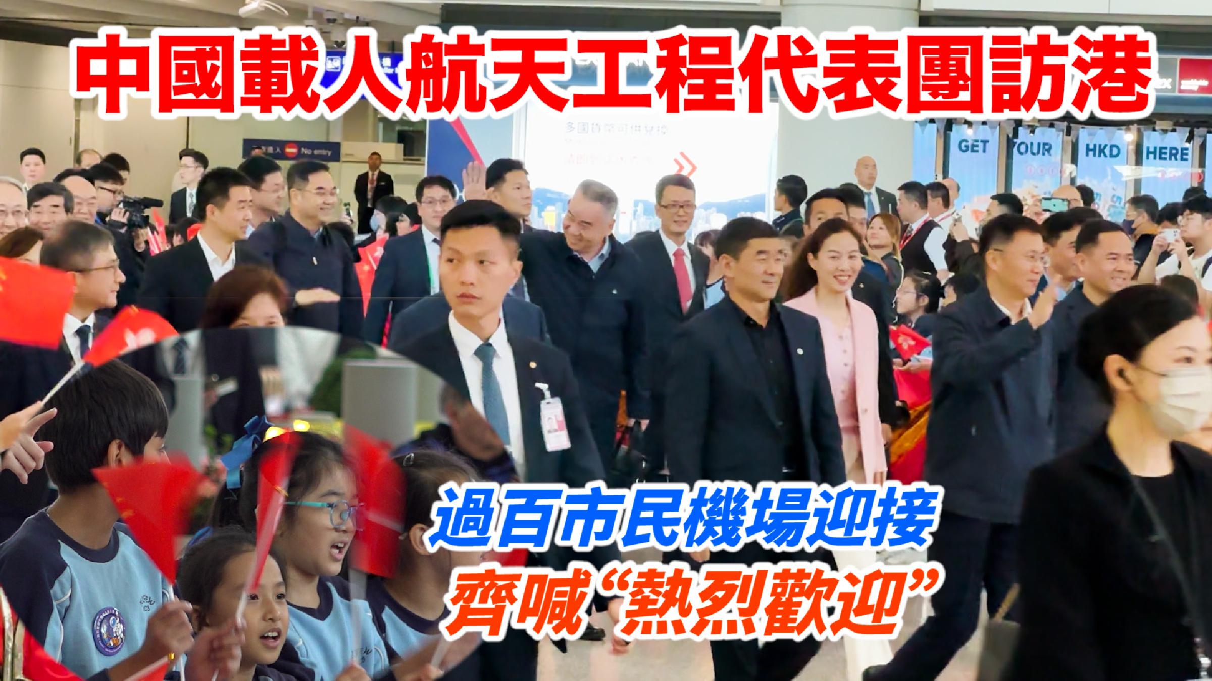 【字幕】 12月1日,中國載人航天工程代表團坐船遊覽維港,後進行巴士巡遊。這是他們在港的最後一天,大批市民一早前來歡送。