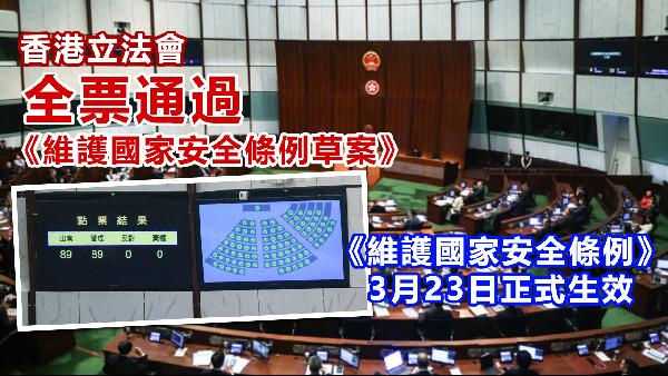 有89人出席,有89位贊成,全票通過。我宣布,議案獲得通過。 【字幕】3月19日,《維護國家安全條例草案》在立法會經過近10個小時的審議,依程序經全體89名議員表決通過。 【字幕】香港特區行政長官李家超在三讀通過後現身立法會大會,宣布《維護國家安全條例》3月23日正式刊憲並生效。 【同期】香港特區行政長官 李家超 今日是香港的歷史時刻,是香港等待了26年8個月19日的歷史時刻,是特區第六屆政府及第七屆立法會終於共同完成光榮使命的歷史時刻,是香港特區共同譜寫光榮歷史的驕傲時刻。我們履行了《基本法》第23條本地立法的憲制責任,完成歷史使命,不負中央所托、不負國家信任,我將簽署《維護國家安全條例》法案,我將條例在23日刊憲並公布實施。 【字幕】會後李家超表示,基本法第二十三條立法之後,“一國兩制”帶給香港的好處會更加明顯。 【同期】香港特區行政長官 李家超 現在《維護國家安全條例》,香港國安法以及香港其他涉及國家安全的法律,渾然一體,融合互補,確保“一國兩制”中一國的國家安全得到有效保障,“一國”是根,根得到的安全保障更牢固,“兩制”的枝葉就更茂盛,香港更繁榮穩定。“一國兩制”的“兩制”,讓香港可以自由開放發展,同時又獲得國家全力支持和保護。香港維持原有生活方式不變,維持資本主義制度,馬照跑舞照跳,資金自由進出,是單獨關稅區,原有自身法律制度不變,香港可自由開放發展。“一國兩制”下的香港,從制度上所得到的已經是無與倫比。 【字幕】梁君彥感謝過往參與的所有官員、立法會秘書長和副秘書長帶領團隊的支援,令立法得以順利在短時間內完成。 【同期】香港立法會主席 梁君彥 在過去兩星期,議員與政府官員合力審議法案,法案委員會更開了馬拉鬆式會議,議員提問過千條問題,審慎、嚴謹和全面地研究每項條文,議員履職盡責,全力以赴,問得“貼地”,官員也準備充足,答得“到位”,消除了不少疑慮,亦反駁了不少謬誤,整個審議公開透明,公眾可以看得到、監察得到,相信大家都認同這個過程是高質、高效和認真,亦顯示了行政立法機關的良性互動,審議質素達至新高度、新標準,為日後的法案審議工作起了良好的示範作用。 【字幕】不少議員表示,在《維護國家安全條例》通過後,香港可以把更多的精力放在提振經濟改善民生上。 【同期】全國人大常委會委員 香港立法會議員 李慧瓊 我們現在完成23條立法,就好像丁薛祥副總理跟我們說一樣,我們可以輕裝上陣,集中精力發展經濟,改善民生。我相信我們全體立法會議員,會像維護國家安全一樣,以同樣的拼勁,去為香港拼經濟謀發展。 【同期】全國政協委員 香港立法會議員 何君堯 1997年7月1日到現在已經有二十六七年的時間,(維護國家安全條例)終於在憲制責任方面完成了。從今天開始,所有的東西更加清晰。大家也知道了,在法律上哪些紅線不能够逾越。 記者 孫晉欣 香港報道 相關新聞 |