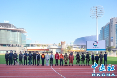 【字幕】12月17日,一場代號為“慧光”的跨部門反恐演習在香港啟德體育園啟德青年運動場舉行,近400名紀律部隊人員參加,另有數百位公眾人士參與。香港保安局局長鄧炳強亦到場。