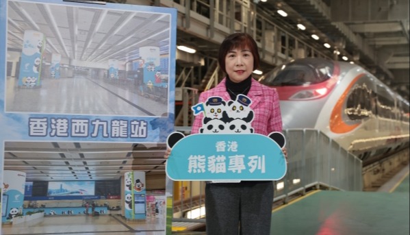 【字幕】港鐵公司與香港旅遊發展局合作,安排香港大熊貓家族登上高鐵動感號列車,首個香港熊貓專列將會在1月11日早上8時23分由香港西九龍站出發。