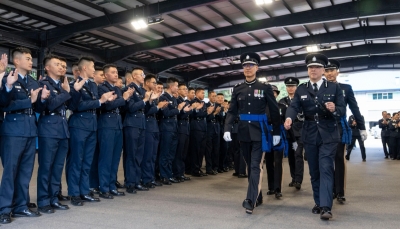 【字幕】9月6日,警察學院舉行結業會操,香港特區政府政務司司長陳國基擔任檢閱官,檢閱30名見習督察及182名學警,見證他們正式成為警隊的一分子。