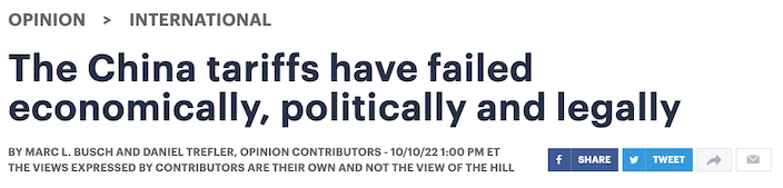 美國喬治敦大學教授馬克·佈施(MARC L. BUSCH)和加拿大多倫多大學教授丹尼爾·特雷弗勒(DANIEL TREFLER)10日在美國《國會山報》(The Hill) 發表聯合署名文章,題為《對華關稅在經濟、政治和法律上都失敗了》。