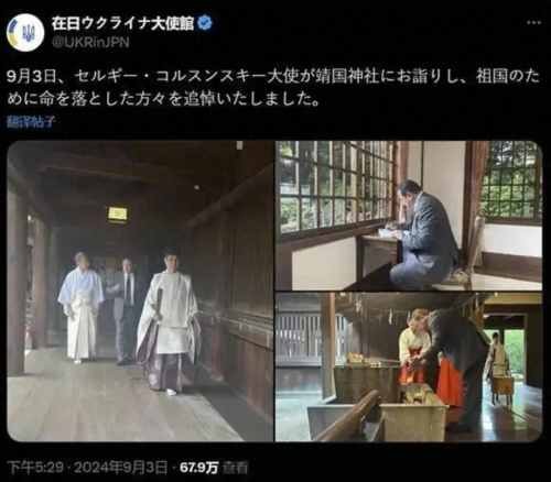 烏克蘭駐日大使館發布的貼文 圖源:X截圖 9月3日是中國人民抗日戰爭暨世界反法西斯戰爭勝利79周年紀念日。但就在當天傍晚,烏駐日大使館在社交媒體平台發帖,曬出大使科森斯基當日參拜靖國神社的照片,並稱此舉是“瞻仰為國捐軀的烈士”。 靖國神社供奉14名二戰甲級戰犯,是日本軍國主義對外侵略擴張的精神支柱,每次日本政要參拜該地,都在亞洲掀起軒然大波。 因此烏方貼文一經發出,便引發中韓等國網民強烈不滿,砲轟烏方此舉公然支持納粹,等同於“參拜法西斯”,是在東亞二戰受害國民眾傷口上撒鹽。 眼見反對聲浪洶湧,烏克蘭駐日大使館4日緊急刪帖,但截圖已在網絡熱傳。5日仍有大量網民發帖留言,希望烏克蘭官方為參拜靖國神社行為道歉。 中國人民大學國際事務研究所所長王義桅5日對香港中通社表示,烏克蘭否認了二戰結果。二戰結果是俄羅斯解放了包括烏克蘭在內的大部分歐洲土地,但烏大使參拜靖國神社否認了這一事實,烏方或想重建一套新敘事,配合美國所謂“民主專制”的聯盟導向。 王義桅續指,烏方此舉也是為爭取日本支持。美國特朗普或重返白宮,歐洲民粹上台,援烏後勁不足。而日本與俄羅斯還未簽署和平條約,某種程度上仍處於二戰的戰爭狀態,更在北方四島問題上爭持不下。日本亦正推進與北約建立緊密合作,包括建立情報分享,提供槍炮彈藥。烏克蘭希望與日本聯手,兩面夾擊俄羅斯。 在韓國論壇FMKorea上,有韓國民眾憤怒地指出,自俄烏衝突爆發以來,韓國曾多次對烏克蘭進行援助,此舉無異於恩將仇報。 王義桅指出,前一段時間中國減少了對韓國的尿素出口,韓國炮彈生產能力下降,當前援烏任務或已轉移至日本。不過韓國此前大量援烏炮彈,烏方此舉是打韓國的臉,尹錫悅政府親美親日政策本就在韓國國內面臨很大反彈,未來若要繼續援烏,必然會受到更大民意反對,但尹錫悅不可能違反美國旨意,會用一些方法繞開民意。 王義桅直言,日本靖國神社有重要象征意義,烏克蘭為了所謂的“國內生存需要”,不惜否定二戰成果,站在法西斯邪惡的一面,對中國、韓國、朝鮮等受日本侵略國家和民族造成巨大傷害。事件在民間發酵,未達到外交事故程度,但烏方一直想爭取中國支持,如此作為,已失民心。(完) 【編輯:王豐鈴】