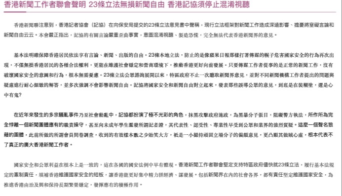 香港中通社圖片 基本法第23條立法工作圓滿完成,可以說是大勢所趨,民意所向。但也要留意到,少數市民在條例立法咨詢期間提出了一些擔憂,包括當中的“國家機密”和“境外勢力”定義模糊,可能會窒礙言論及新聞自由和影響對外的學術交流活動云云。 在這些人當中,部分人是出於抹黑23條立法的目的而挑刺,不過也有一些人是真心擔心正常新聞工作、學術工作會誤墮法網。當然,他們沒有必要擔憂。因為有關條例清楚界定了各項罪行,並定有適當的例外情況。 譬如,“境外干預罪”須同時符合配合境外勢力、使用不當手段、意圖帶來干預效果三者,這與正常國際交流交往合作沒有任何關係;又如條例明確將維護公眾利益作為非法獲取、管有、披露國家秘密有關罪行的免責辯護理由,有效保障言論自由和新聞自由。大致而言,23條立法沿襲香港法治特點及兼顧社會各界意見,是香港高水平法治的又一體現。 事實上,從剛剛完成的基本法第23條立法的內容來看,香港維護國安立法相比英美等國已經算是溫和,英美等國的國家安全法律遠比香港的法律條文“辛辣”。一些別有用心的歐美政客不去質疑英美自家的國安法窒礙和損害言論自由,反過來質疑香港,應該覺得臉紅。 隨著《維護國家安全條例草案》在香港立法會三讀通過,意味著該法案正式生效,但不等於相關工作已經完成。展望未來,特區政府有必要繼續進行宣傳工作,回答公衆諮詢期間市民的關注,包括是否會影響市民的權利和自由,以及如何誤墮法網等等。我們有理由相信,隨著條例的實施,香港未來能夠不斷向前發展,實現更加美好的明天。 (本文作者唐君賢為香港學研社成員) (本文為作者觀點,不代表本媒體立場) 【編輯:黎金良】