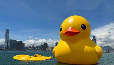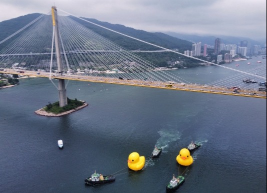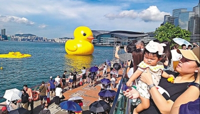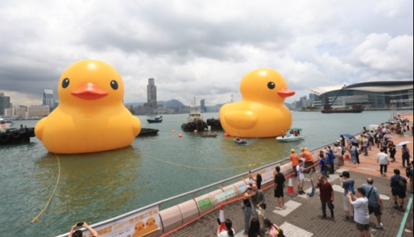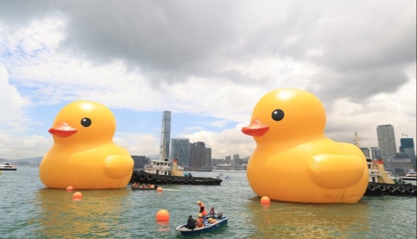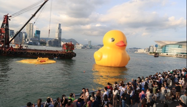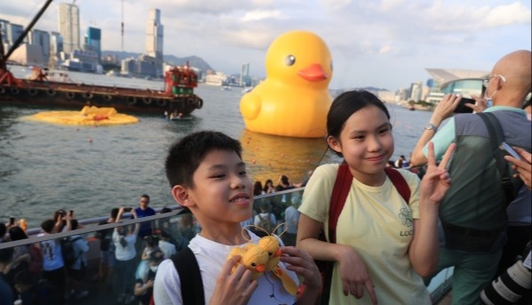 【解說】6月9日,由荷蘭藝術家霍夫曼呈獻的大型海上公共藝術展覽《橡皮鴨二重暢》正式於添馬公園海濱舉行啟航禮,此次啟航禮迎接兩隻橡皮鴨正式進駐維港,展開為期約兩周的展覽。可愛的巨型橡皮鴨停駐在維港海面,與絢麗多彩的維港景色相映成趣,與市民旅客共聚美好時光。 【解說】自2007年起,霍夫曼創作的巨型橡皮鴨便開始遨游世界各地,2013年首度來港時,曾吸引了大批市民旅客親臨維港海濱一睹真身。訪港10周年之際,橡皮鴨首度攜同伴重臨,兩隻橡皮鴨高18米,是全球最高的橡皮鴨之一。對於首次在全球同時展出兩隻橡皮鴨,霍夫曼表示兩隻代表雙倍的好運,他希望在疫情後,能够用藝術的治愈力量溫暖人心。 【同期】荷蘭藝術家 Florentijn Hofman(霍夫曼) 2013年我們曾在香港舉辦了一個很棒的項目,當AllRightsReserved(主辦方)叫我再次帶橡皮鴨來香港時,我想這次要帶兩隻來,這樣就帶來了雙倍的好運,在這場全球疫情之後,我想大家需要它,因為我們都渴望有一個良好的社會氛圍,我認為這就是這兩隻橡皮鴨能帶來的。這次來香港我感受到這座城市的活力回來了,之前我們都在與病毒作鬥爭,現在世界開放了,香港開放了,人們也再次打開心扉,我也非常高興,因為我身後的這個項目已經成功完成了,我希望它在接下來的幾周能帶給更多人驚喜。 【解說】“橡皮鴨游香港”的特色造型於近日登陸港鐵車站,天星小輪也塗上橡皮鴨象征色彩,化身橡皮鴨主題小輪,昂坪360纜車亦將打造“飛天橡皮鴨”、泡泡浴主題纜車等,聯手打造橡皮鴨海陸空式訪港,創意十足。作為此次展覽的策展人,林樹鑫告訴記者,繼2013年策劃這活動後,不斷有人詢問何時再帶橡皮鴨回來,今年適逢十周年,於是他們決定再次邀請老朋友回來探望大家,希望帶給大家快樂。 【同期】策展人林樹鑫 因為上次有很多(一家)三代人來參觀這個展覽,所以充滿了很多回憶在裡面,我想最重要是因為疫情過去了,我們每個人都努力生活,所以這件事想帶給大家的,除了回憶之外還有我想是新的重拾快樂,因為10周年,我這有個諧音,就是重“拾”快樂。 【同期】香港市民 吳小姐 (橡皮鴨)10年前香港也有過, 10年之後兩隻一起,就跟10年前很不一樣,今天也是很多人來,氣氛都很熱鬧,看到這麼可愛的東西,然後心情也是特別好,特別開心,平常可能工作就算有壓力什麼的,這個時候也是很好的放鬆。 【同期】香港市民 陳小姐 鴨子(的玩具)我們小時候在洗澡的時候會放到洗澡盆裡的,然後將鴨子放在海面上,能提醒大家不要忘記自己的童真 。(10年前展覽)那會兒我還在讀書,還沒有來到香港,時間過得很快,10年之後來了兩隻。我男朋友比較感興趣這個東西,這次他也正好過來香港實習,然後正好有兩隻鴨子,就感覺跟我們的經歷比較符合,因為之前是我一個人先來香港,然後後面他再過來,就感覺跟這個比較像,我就想過來看一眼。 【解說】據悉,《橡皮鴨二重暢》除帶來一對橡皮鴨進駐中環海面,6月18日父親節之際,其中一隻還將在下午1時“出巡”,沿維港海岸線漫游,經銅鑼灣海面游過尖沙咀,細看九龍沿岸風景,與市民旅客打招呼,為社會注入更多歡樂氣氛。 記者 雷睿 張宏斌 香港報道 |