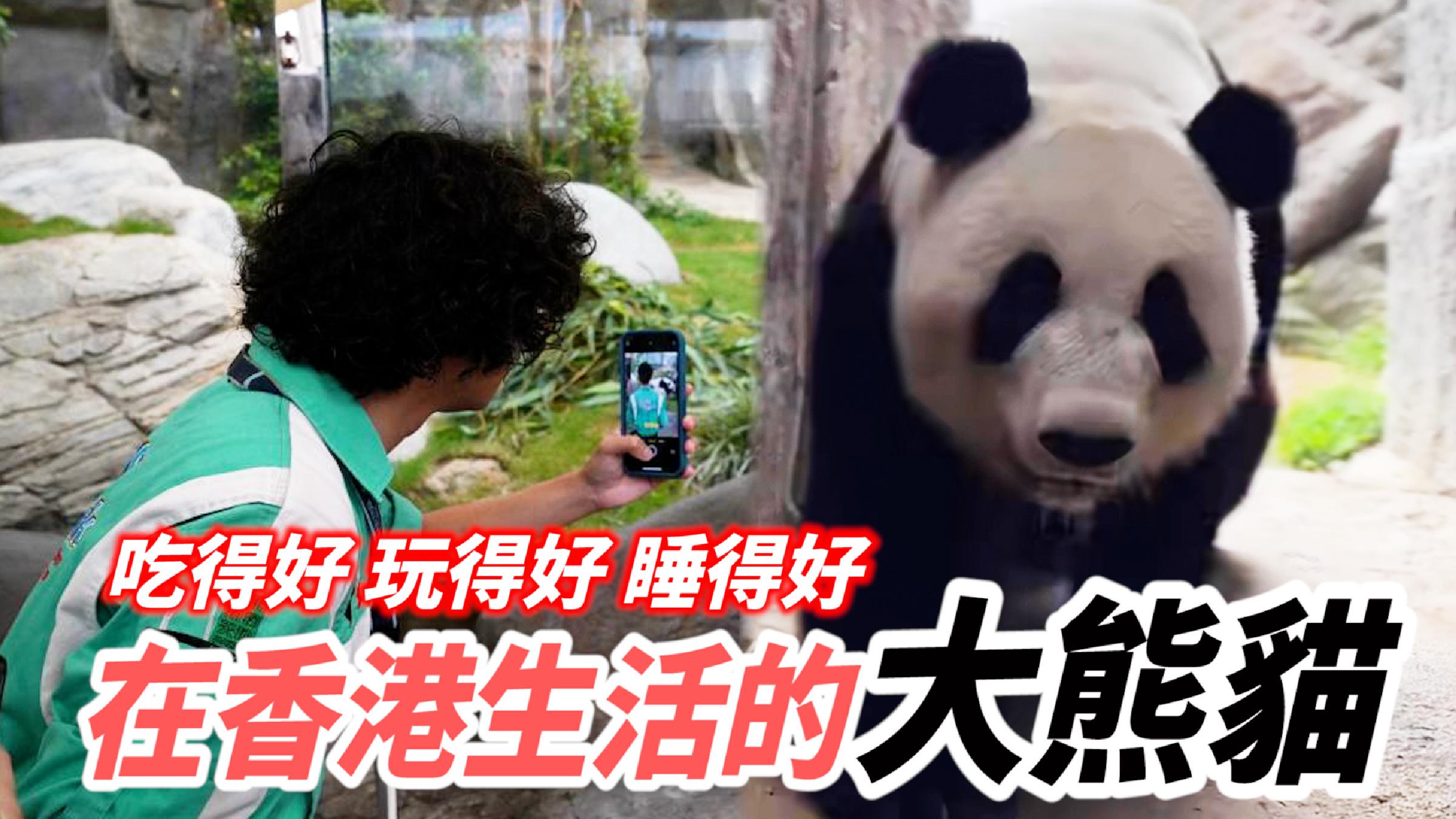 【字幕】成年的大熊貓一般體重約80~120公斤,以香港海洋公園的雄性大熊貓樂樂和䧳性大熊貓盈盈為例,樂樂每日平均竹子攝取量為35磅,盈盈竹子攝取量18-20磅。