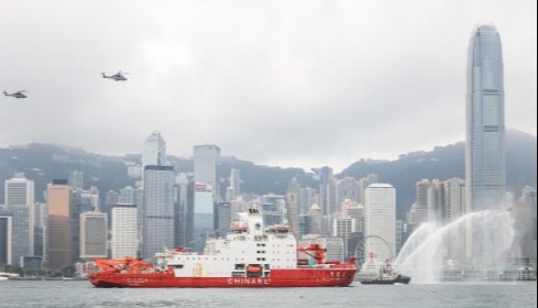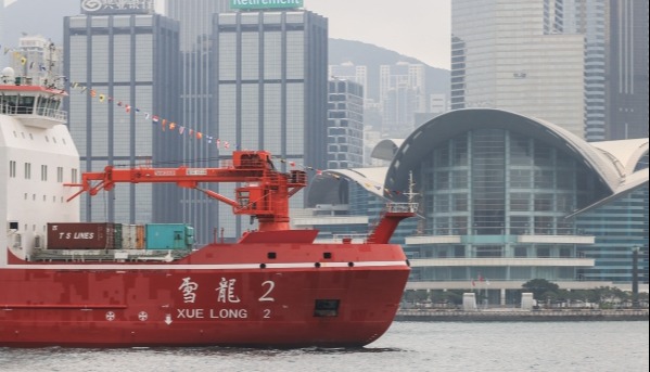 香港舉行了隆重的歡迎儀式,兩艘拖船和一艘消防船對射形成“水拱門”迎接,香港特區政府飛行服務隊的2架直升機飛越維港上空,多艘民間及政府船隻懸掛橫幅,歡迎“雪龍2”號到來。