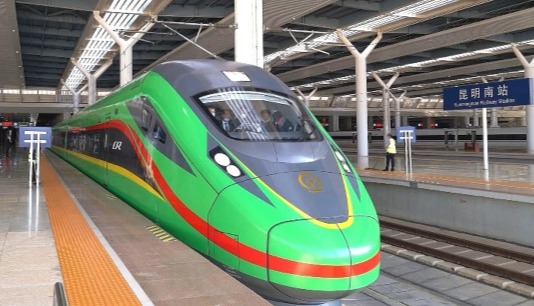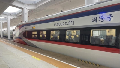 【字幕】中老鐵路全長1035公里,北起中國昆明,南至老撾萬象。