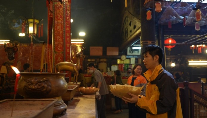 【你不知道的香港】求神拜佛也能異地 香港寺廟“代客參神”服務周到 【解說】擺上蠟燭、點上香、向神明稟告願望和心願、上香祭拜......這是香港文武廟職員郭健峰每天的工作日常。這樣參拜流程,有時候他一天要重複數次。但是大多數時候,他參神許願並非為了自己,而是替來自世界各地的善信,將他們的心聲和願望轉達給神明。
