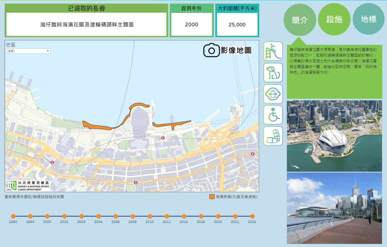 香港新聞網1月31日電 由地政總署編製的2023年《e香港街》電子地圖今日(1月31日)起供免費下載。今年的版本以海濱長廊為主題,以互動故事地圖介紹21條海濱長廊。故事地圖載有各海濱長廊的簡介、風景照片、新舊對比的影像地圖,以及時間線讓市民了解海濱長廊的演變。