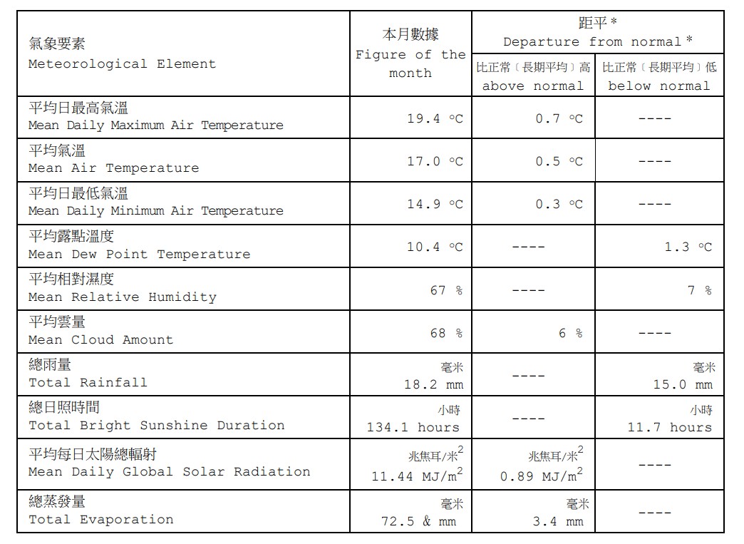 香港新聞網2月2日電 據香港天文台報道,由於2023年1月內大部分時間影響廣東的東北季候風普遍較正常弱,縱使當中穿插幾段寒冷天氣,1月香港整體較正常溫暖。全月平均氣溫17.0度較正常值16.5度高0.5度。該月亦較正常少雨,全月總雨量為18.2毫米,較正常值33.2毫米少約45%。 在東北季候風影響下,1月首兩日本港天氣乾燥及短暫時間有陽光。受東北季候風補充及廣東沿岸的雲帶影響,1月3日本港天氣轉涼,大致多雲及有幾陣雨。隨着覆蓋沿岸地區的雲帶轉薄,1月4日下午本港部分時間有陽光。隨着東北季候風的緩和,1月5日及6日本港大致天晴,日間天氣和暖。 受一股清勁至強風程度的偏東氣流及與高空擾動相關的廣闊雲帶影響,1月7日本港雲量增多。1月8日至12日本港天氣持續多雲及有幾陣雨。在一股海洋氣流影響下,1月13日及14日本港天氣和暖,有霧及有幾陣雨,1月13日早上橫瀾島能見度曾一度下降至100米左右。1月14日本港日間部分時間有陽光,天文台氣溫於當日上升至全月最高的24.7度。