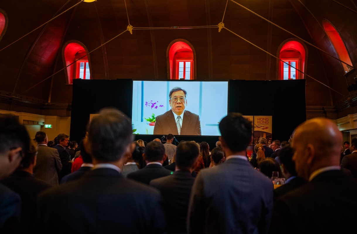 丘應樺透過視像致辭 商務及經濟發展局局長丘應樺透過視像在酒會上致辭,強調香港與澳洲的經濟和貿易聯繫在疫情挑戰下仍然強健。丘應樺指出,香港將迎接美好一年,在國家《十四五規劃綱要》和粵港澳大灣區發展的堅實支持下,預期經濟會顯著復蘇。 丘應樺表示,在國際層面,香港正積極爭取盡快加入《區域全面經濟伙伴關係協定》這個現時全球規模最大的自由貿易協定。 丘應樺說:“香港作為全球其中一個最重要的金融中心,以及在‘一國兩制’下唯一同時享有中國和國際優勢的城市,已具備一切條件迎接全球機遇。”