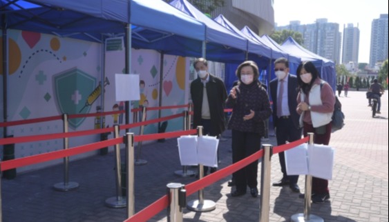 香港新聞網2月8日電 香港特區政府公務員事務局局長楊何蓓茵今日(2月8日)到衞生署設於鄧志昂母嬰健康院的熱線中心視察,了解該署人員致電聯絡使用母嬰健康院服務的幼童的家長,主動向他們講解接種新冠疫苗的重要性,並為他們安排預約到母嬰健康院接種疫苗。