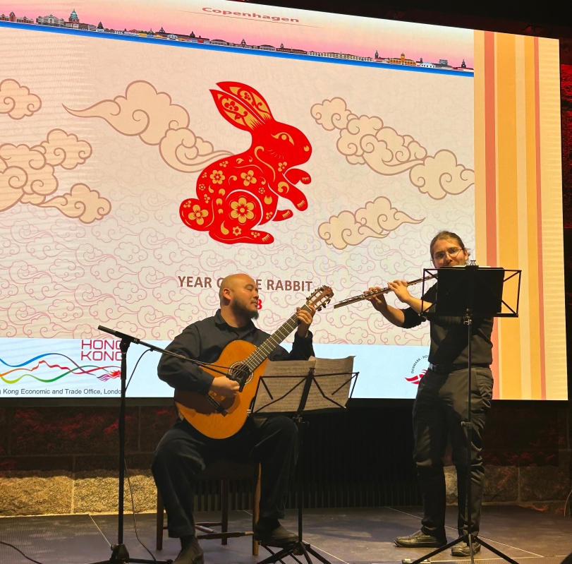 哥本哈根酒會上的音樂表演 羅莘桉補充:“我們正針對各項對香港有重要策略價值的產業,包括生命健康科技、人工智能與數據科學、金融科技、先進製造、新材料與新能源科技等,引進相關企業和人才。自從成立引進重點企業辦公室及人才服務窗口線上平台投入運作,各界的反應均非常熱烈。” 倫敦經貿辦將繼續於其負責國家舉辦慶祝兔年活動。 (完) 【編輯:黃璇】