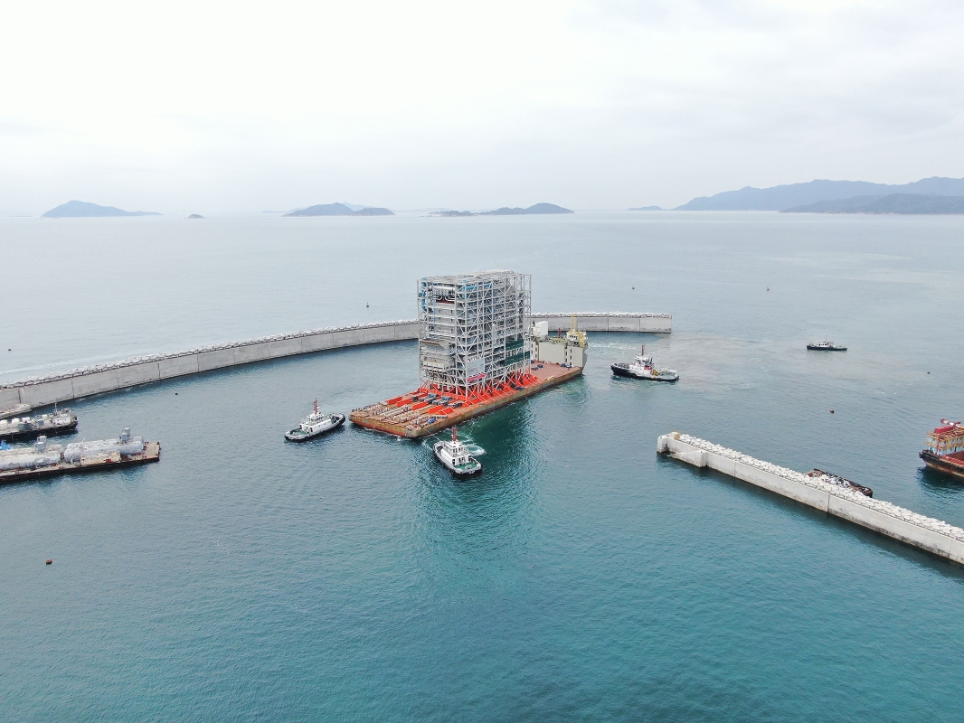 I·PARK1共有12個巨型機電設備預製組件 首個鍋爐燃燒組件的體積約58x25x50米,差不多等於11架A380空中巴士的重量。要由水路跨境運送這樣一個組件來港並非易事,風浪和天氣均對海上運輸有着很大的影響。環保署基建發展組的同事為了這次“首航”,做了大量準備工夫,除了一直與在珠海的承建商人員及駐地盤工程監督人員緊密聯絡外,亦派員親身前往珠海實地視察付運前的安排細節。其間兩地項目團隊一直留意兩地天氣和海面情況的變化,每天都開會數次檢視實時、實地的具體情況是否適宜付運工作,最後組件在經過差不多20多小時的航程後在2月11日順利抵港。整個過程結合了天時、地利、人和,既要因應海浪和天氣情況作出良好規劃,亦要善用香港位處大灣區的地緣優勢和完善的海運物流建設,更要兩地項目團隊的緊密配合,以及特區政府各部門和大灣區相關單位的通力合作,才能令交付過程順利完成。