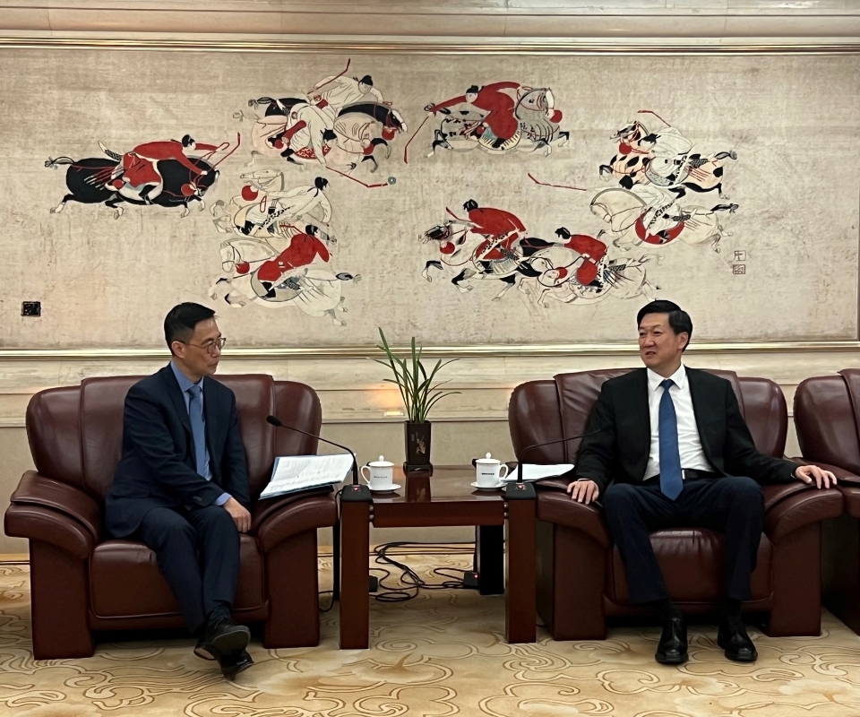 楊潤雄(左)今日在北京與國家體育總局局長高志丹(右)會面交流 楊潤雄表示:“國家體育總局一直支持香港的體育發展,香港不少精英運動員亦獲得機會到內地與國家隊一同訓練,改善競賽水平。內地優秀的運動員和教練來香港服務體育界,也提升了香港運動員的技術能力。內地與香港的體育交流及各方面的協作亦日趨頻繁,我們期望可繼續深化相關安排,尤其通過香港參與舉辦2025年全國運動會的契機,推動香港體育產業更好地融入粵港澳大灣區的發展之中。”