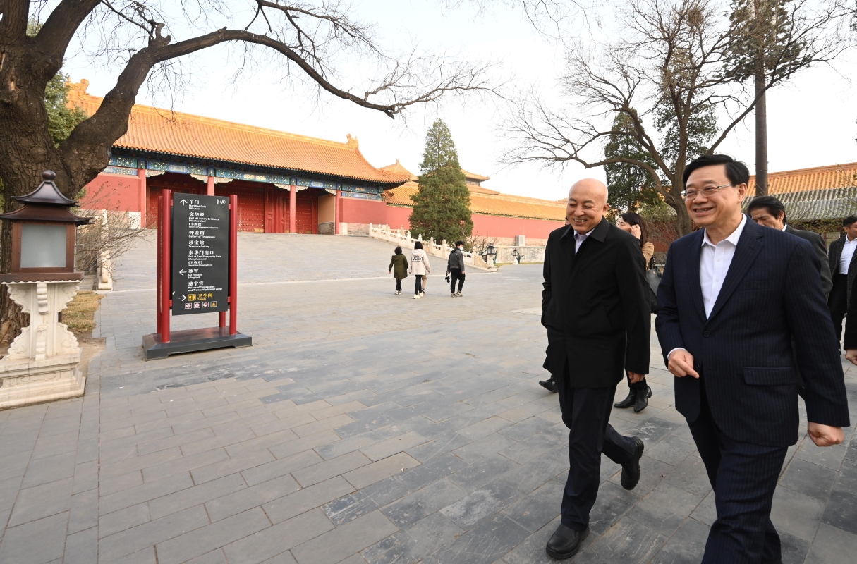 李家超在北京參觀故宮博物院。圖為李家超(右)與故宮博物院院長王旭東(左) 李家超表示,感謝故宮博物院對建設香港故宮文化博物館的大力支持,借出珍貴文物在香港長期展示,並與香港同儕共同策劃開幕展覽。香港故宮文化博物館在去年順利開幕,旋即成為香港的文化新地標,亦是旅客必到的景點。 李家超欣悉香港西九文化區和香港故宮文化博物館將繼續與故宮博物院討論未來的合作方向,項目涵蓋展覽、青少年教育、國際交流合作、專業人才培訓等。他期望故宮博物院可以利用香港作為中外文化藝術交流中心的平台,說好中國故事,傳播好中國聲音。李家超今日將繼續在北京的行程,拜訪不同中央部委和機構。 (完) 【編輯:黃璇】