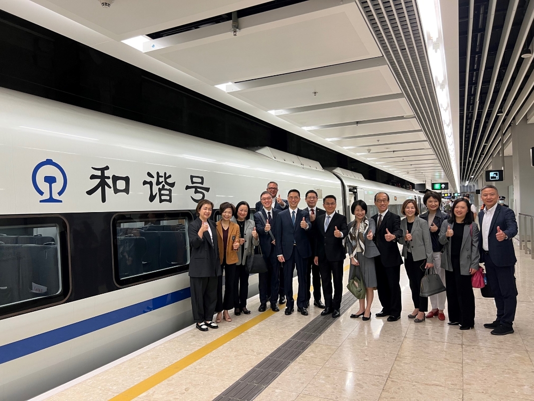 楊潤雄(前排左五)出訪廣州,旅遊事務專員沈鳳君(右六)和旅遊業界人士亦有同行 楊潤雄表示:“特區政府一直重視與廣東省的聯繫,民間交流亦頻繁,文化旅遊方面大有合作發展的空間。國家《粵港澳大灣區文化和旅遊發展規劃》(《文旅規劃》)明確指出香港作為國際城市旅遊樞紐和“一程多站”示範核心區的定位,在推動粵港澳大灣區旅遊高質量發展中擔當重要角色。在國家支持下,有信心香港可善用完善的跨境基建和豐富的旅遊資源,為將粵港澳大灣區打造成世界級休閒灣區的目標發揮正面作用。文化合作方面,粵港澳三地自2002年起建立文化合作機制,未來會致力強化機制,增加粵港澳大灣區內藝團的演出機會。”