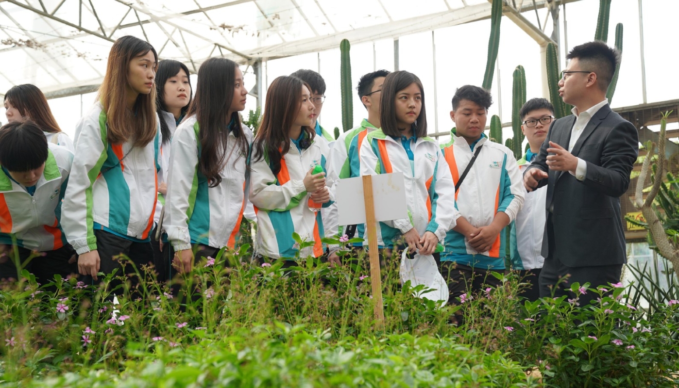 “香港海關青年發展計劃”團員參觀光明農場大觀園期間,聽取人員講解供港農產品和食品的檢驗檢疫監管措施