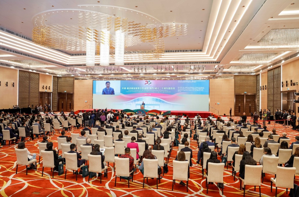 主禮嘉賓主持中葡論壇成立二十周年系列活動啓動儀式。 中葡論壇常設秘書處秘書長季先峥發表歡迎辭。他表示,20年來,在中國中央政府的大力支持下,在澳門特區政府的積極配合下,在葡語國家的共同參與和努力下,中葡論壇機制不斷完善,建設成效不斷彰顯,為促進中國和葡語國家各領域交流合作,為提升葡語國家在華影響,為澳門中葡商貿合作服務平台建設發揮了不可替代的作用。他感謝所有為論壇創立和發展做出貢獻的中國和葡語國家各界人士,並表示常設秘書處將緊緊圍繞部長級會議制定的行動綱領,繼續支持打造澳門中葡商貿合作服務平台,為促進中國與葡語各國人民相知相親作出新的貢獻。 澳門特區行政長官賀一誠致辭時表示,隨著澳門中葡平台功能建設的不斷完善,希望論壇能夠充分利用澳門的獨特優勢以及橫琴粵澳深度合作區建設的機遇,結合澳門當前“1+4”適度多元發展策略,讓澳門企業在促進內地與葡語國家經貿合作及澳門與葡語國家人員往來方面發揮更大作用,並實現共同發展。特區政府圍繞“一中心、一平台、一基地”的發展定位,用好中央支持澳門發展的各項政策措施;繼續全力支持中葡論壇常設秘書處的工作,進一步擴展中葡平台功能,助力中國和葡語國家經貿人文合作不斷深化。 中國商務部台港澳司副司長李曉輝表示,中葡論壇20年來先後舉辦五屆部長級會議和一屆部長級特別會議,合作領域由最初的7個發展到超過20個。中葡論壇已經覆蓋了世界上所有以葡語為官方語言的國家。中國與葡語國家的貿易額從2003年的110.3億美元增加至2022年2148.3億美元;中國與葡語國家人文交流豐富多彩,葡語國家共計超過1.3萬人次到中國內地和澳門參加研修培訓或留學教育。中方願與各葡語國家一道,加強合作、共謀發展、共創未來,推動中葡間各領域務實合作不斷邁上新台階。